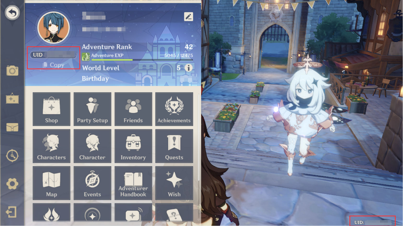 Untuk menemukan UID Anda, masuk pakai akun Anda. Klik pada tombol profile di pojok kiri atas layar. Temukan UID dibawah avatar. Masukan UID Anda di sini. Selain itu, Anda juga dapat temukan UID Anda di pojok bawah kanan layar.